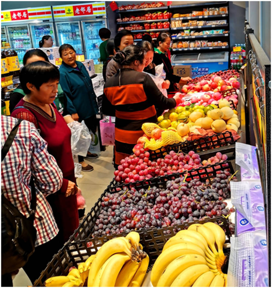 眉山(shān)下(xià)西(xī)街(jiē)店(diàn)營業(yè)面積近(jìn)400平方米,經營商品除日(rì)用(yòng)消費(fèi)品、糧油、日(rì)雜(zá)用(yòng)品外(wài) ,還(hái)為(wèi)消費(fèi)者提供了(le)品類豐富的(de)新鮮水(shuǐ)果,店(diàn)內(nèi)商品SKU數(shù)超過6000個(gè),該店(diàn)是(shì)輻射範圍內(nèi)購(gòu)物(wù)便利、支付便捷、品類豐富、老(lǎo)百φ姓值得(de)信賴的(de)綜合型城(chéng)市(shì)超市(shì)。